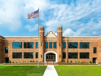 ‘Old Berkeley High School’ is widely recognized as the gateway to Moncks Corner’s business district and considered important to the town’s historic fabric. The existing 1929 building was unoccupied and in need of extensive restoration, including weather proofing, window replacement, brick repointing, new HVAC, electrical and plumbing, and ADA compliant entries.
